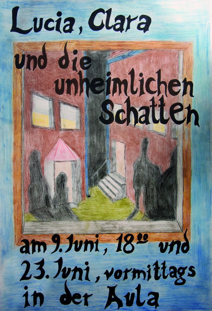 Lucia bezeichnet sich als tiefbegabt und freundet sich mit Clara (einem hochbegabten Mädchen) an. Als Clara entführt wird, versucht Lucia sie zu finden und zu befreien, obwohl sie sich das eigentlich nicht zutraut. Zusätzlich hat sie Angst vor den Schatten, die sie nachts im Hinterhaus immer sieht. Am Ende stellt sich heraus, dass die Schatten durch den Entführer und die entführten Kinder entstanden sind. Lucia schlussfolgert einige Dinge richtig und kann ihre Freundin befreien. Das Plakatbild könnte einfach ein Fenster mit Vorhang und Schatten darstellen und sollte eine etwas unheimliche Atmosphäre verbreiten. Die Aufführungen sind am
