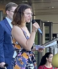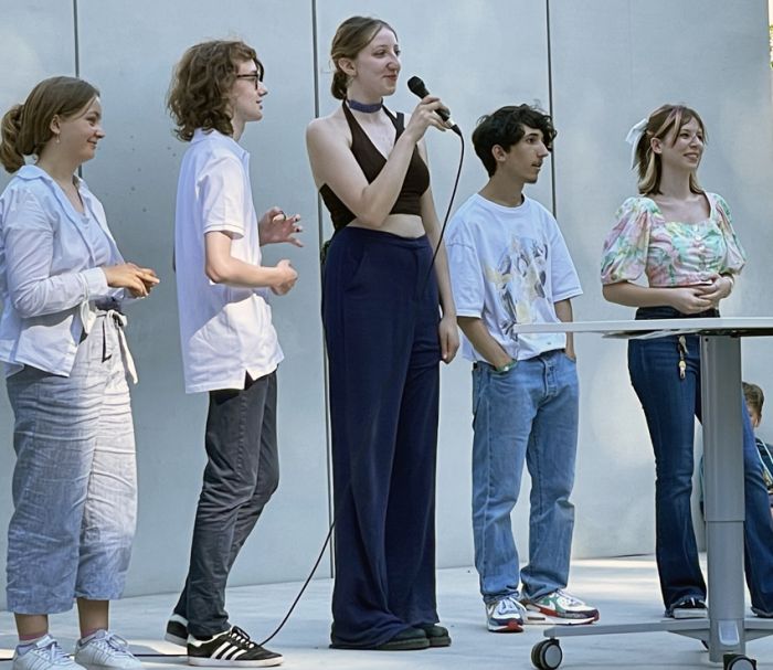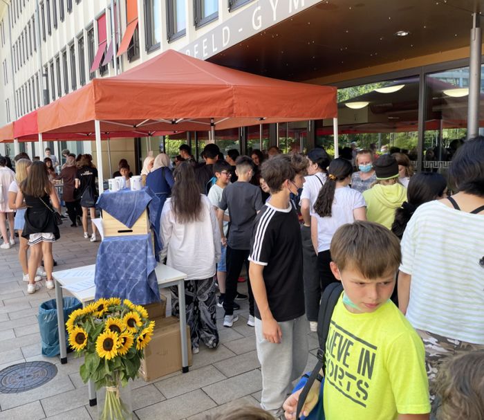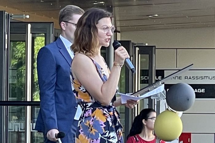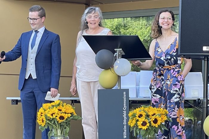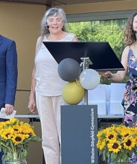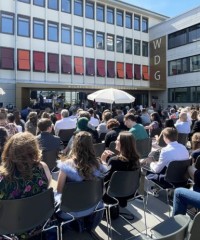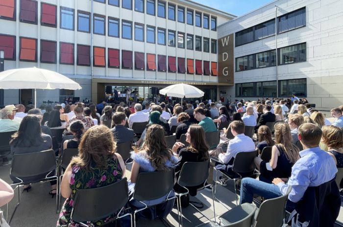 Auch die diesjährige Verleihung der Abiturzeugnisse stand bezüglich des Wetters unter einem außerordentlich guten Stern und konnte am Mittwoch, 15. Juni 2022, mit viel Sonne auf dem Schulhof des WDG stattfinden. Nach der Ansprache von Schulleiterin Claudia Schweizer-Motte und den Reden der Jahrgangsstufenleitung, Philipp Debus und Natalie Richter, wünschten auch die Stufensprecher*innen des Jahrgangs, Hamzeh Chaif und Maria Wereshaev, den diesjährigen Abiturientia in dieser politisch und gesellschaftlich komplizierten Zeit Mittel und Wege, die eigenen Ziele für die Zukunft zu verwirklichen.