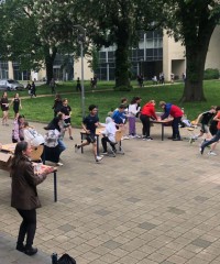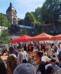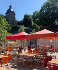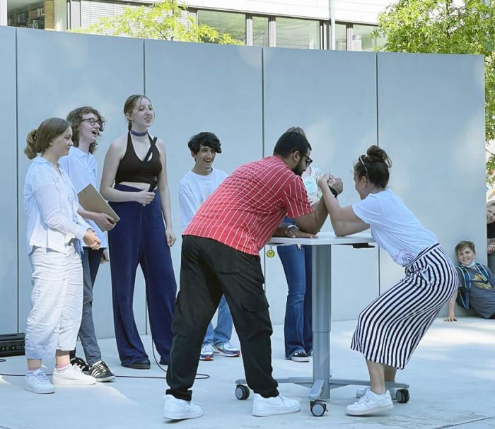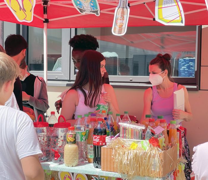 Die Schülerinnen und Schüler der Jahrgangsstufe Q1 organisierten auch in diesem Jahr zusammen mit der Hausmeisterin den Auf- und Abbau von Bühne und Bestuhlung und den Getränkeausschank.