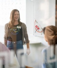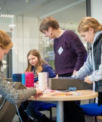 Die Schülerinnen und Schüler der Leistungskurse waren ebenso gefordert: sie mussten als „Muttersprachler“ auf ihre jüngeren Mitschülerinnen und Mitschüler zugehen, sich dem Sprachniveau angemessen anpassen, die „Kleinen“ aus der Reserve locken und sie zum Englisch-Sprechen ermutigen.